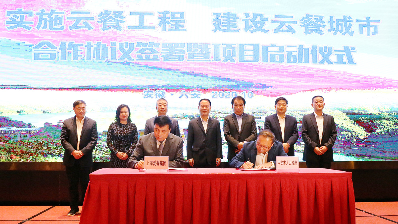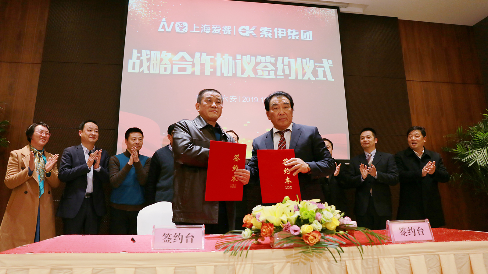 上海愛餐集團(tuán)與索伊集團(tuán)簽署戰(zhàn)略合作協(xié)議,六安市委書記葉露中、六安市人大常委會(huì)時(shí)任主任王勝、六安市開發(fā)區(qū)主任盧俊、上海愛餐集團(tuán)董事長(zhǎng)何青、索伊集團(tuán)董事長(zhǎng)王瓊峰等領(lǐng)導(dǎo)出席簽約儀式。