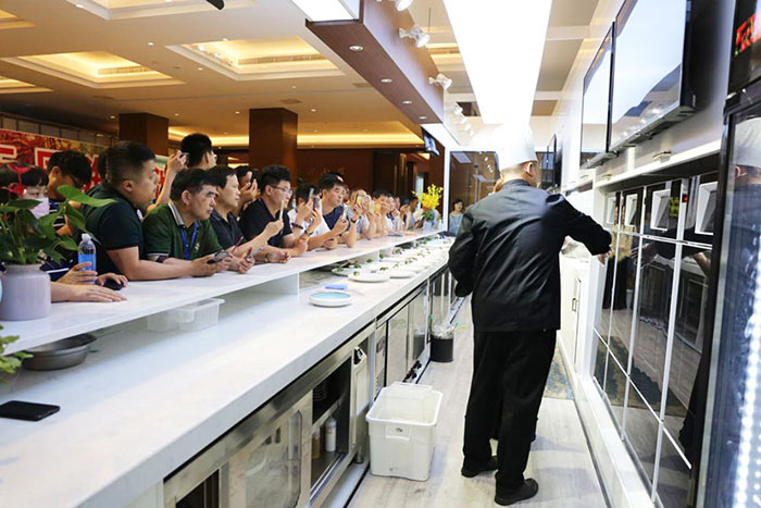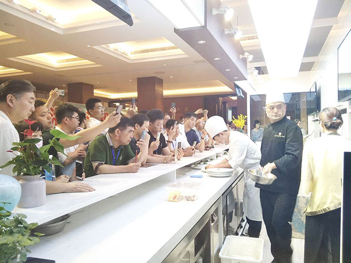 參會(huì)人員對(duì)酒店現(xiàn)場(chǎng)展出演示的味霸機(jī)器人廚師體驗(yàn)館表示出了極大的興趣,紛紛圍觀拍照、咨詢體驗(yàn)