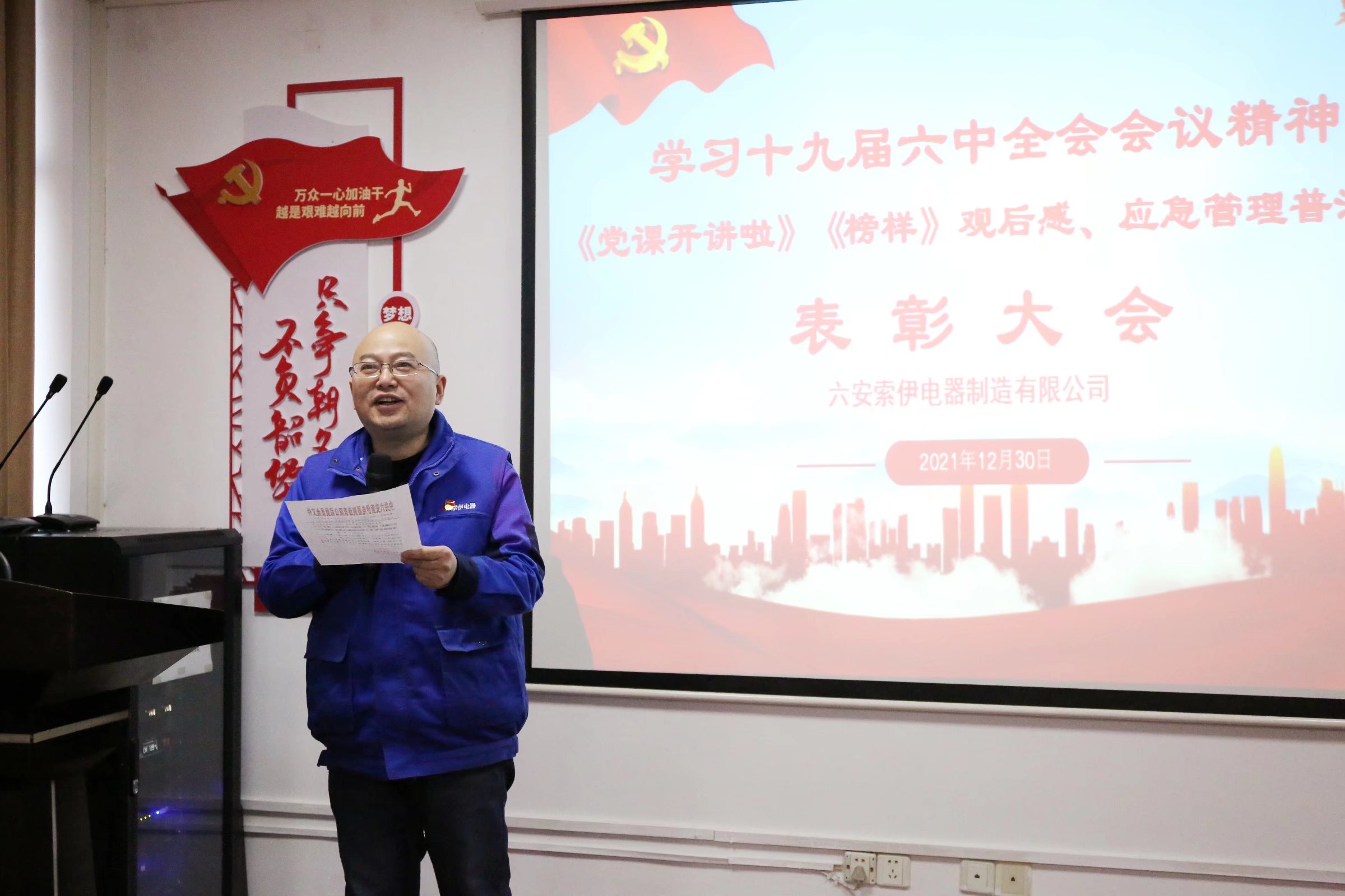 最后公司顧問陳昌國進行了講話和要求。學習十九屆六中全會精神,各支部一定要與公司2022年度提出的全面預算管理目標工作結合起來,每一名共產黨員要成為務實創新奮斗的一面旗幟,求突破,求發展,立足實際,守住初心,在共創、共享、共富的索伊大家庭里,攜起手來,共同遇見索伊美好的未來。