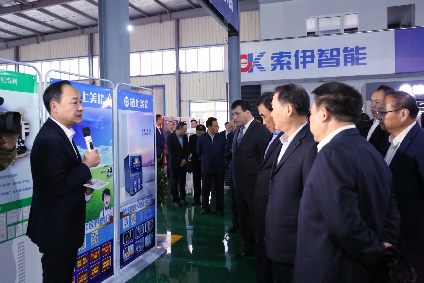 啟動儀式召開前,參會人員一行60余人來到安徽索伊集團智能產(chǎn)品生產(chǎn)車間,聽取了該公司董事長助理倪曙東關(guān)于智能工廠的產(chǎn)線配備、布局、建設(shè)目標,云餐工程的產(chǎn)業(yè)鏈及下一步實施云餐工程的步驟和規(guī)劃,參觀了愛餐機器人炒菜機生產(chǎn)線和索伊集團產(chǎn)品展示廳,了解了云餐工程產(chǎn)業(yè)鏈中的無人售貨柜、生鮮自提柜及第二代智能飲料咖啡機等產(chǎn)品。與會領(lǐng)導(dǎo)來到索伊君瀾大酒店愛餐機器人體驗館,現(xiàn)場觀看了愛餐機器人炒菜的制作過程,品嘗了機器人的美味佳肴。